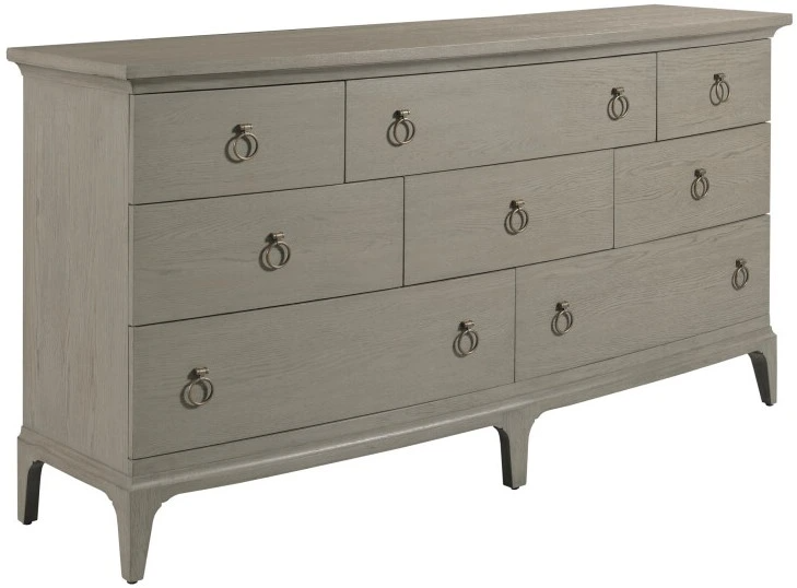 The Milan collection merges sophisticated design with modern functionality. Crafted from white oak veneers in a warm gray patina, each piece blends classic silhouettes with a contemporary finish. This comprehensive home collection is defined by graceful bowed fronts, custom ring pull hardware, and elegant metal accents. From the upholstered shelter bed to the versatile dining tables, Milan brings a seamless aesthetic of warmth and architectural presence to every room, ensuring both beauty and utility throughout your home.