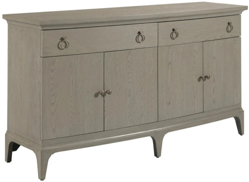 The Milan collection merges sophisticated design with modern functionality. Crafted from white oak veneers in a warm gray patina, each piece blends classic silhouettes with a contemporary finish. This comprehensive home collection is defined by graceful bowed fronts, custom ring pull hardware, and elegant metal accents. From the upholstered shelter bed to the versatile dining tables, Milan brings a seamless aesthetic of warmth and architectural presence to every room, ensuring both beauty and utility throughout your home.