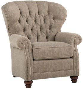 The Smith Brothers 522 Collection Taupe Stationary Chair features a classic wingback shape with rolled arms and luxurious details, such as the deep diamond button tufting and intricate nail head trim. Leather version available.Read More