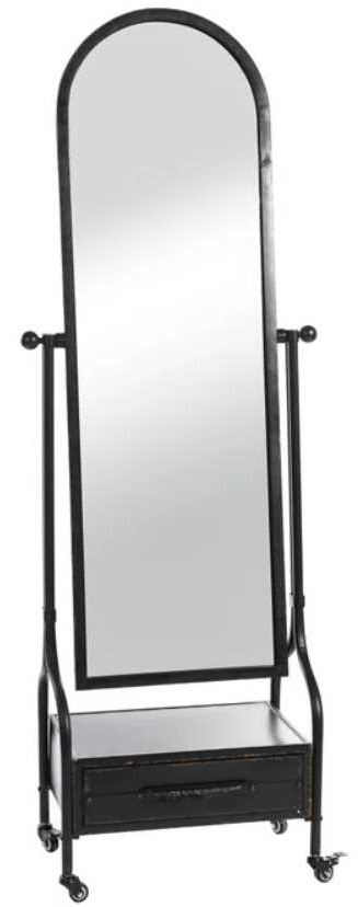Elevate your living room design with this Cheval mirror with castor wheels from Stylecraft. Shown in a black metal finish. Make a bold statement by incorporating this stunning mirror into your home.Read More