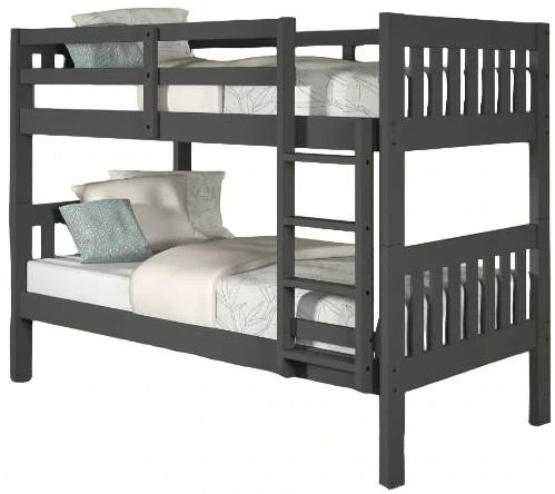 The Woodcrest Pine Ridge Twin/Twin Mission Bunk Bed features a sturdy gray finish pine frame with a classic mission design. This bunk bed provides a practical and stylish solution for shared bedrooms, offering durable construction and a timeless look that complements various décor styles. Ideal for maximizing space and comfort.Read More