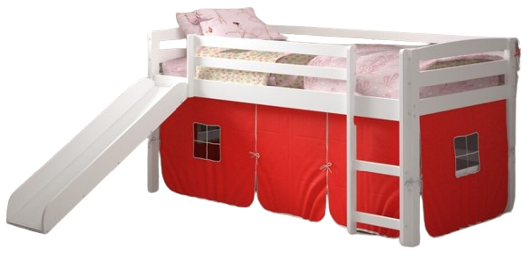 Mini loft with slide and red tent